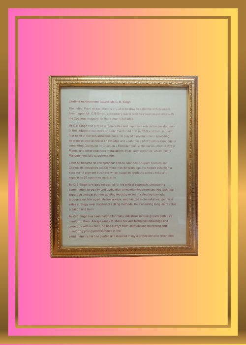 In 1982, Mr. Singh transitioned to entrepreneurship, co-founding Anupam Colours & Chemicals Industries (ACCI) in GIDC Vapi. Specializing in the manufacture and export of Lead Chrome and Anti-Corrosive pigments, ACCI has since become a respected name in the industry. Today, the company is recognized as a One Star Export House, delivering consistent quality and exceptional service. ACCI’s product portfolio has expanded to include Pigment Pastes, Anti-Corrosive Pigments, Phthalocyanine, and Azo Organic Pigments, catering to both domestic and international markets.